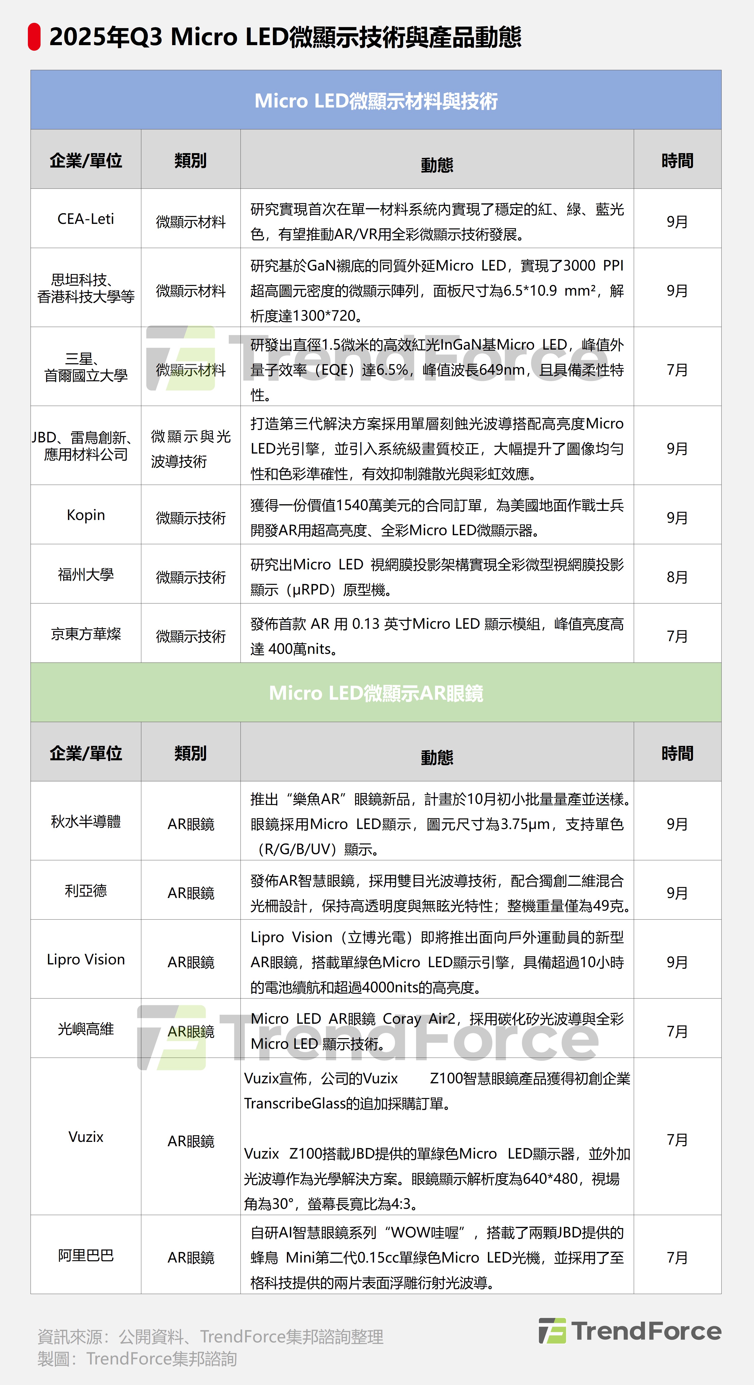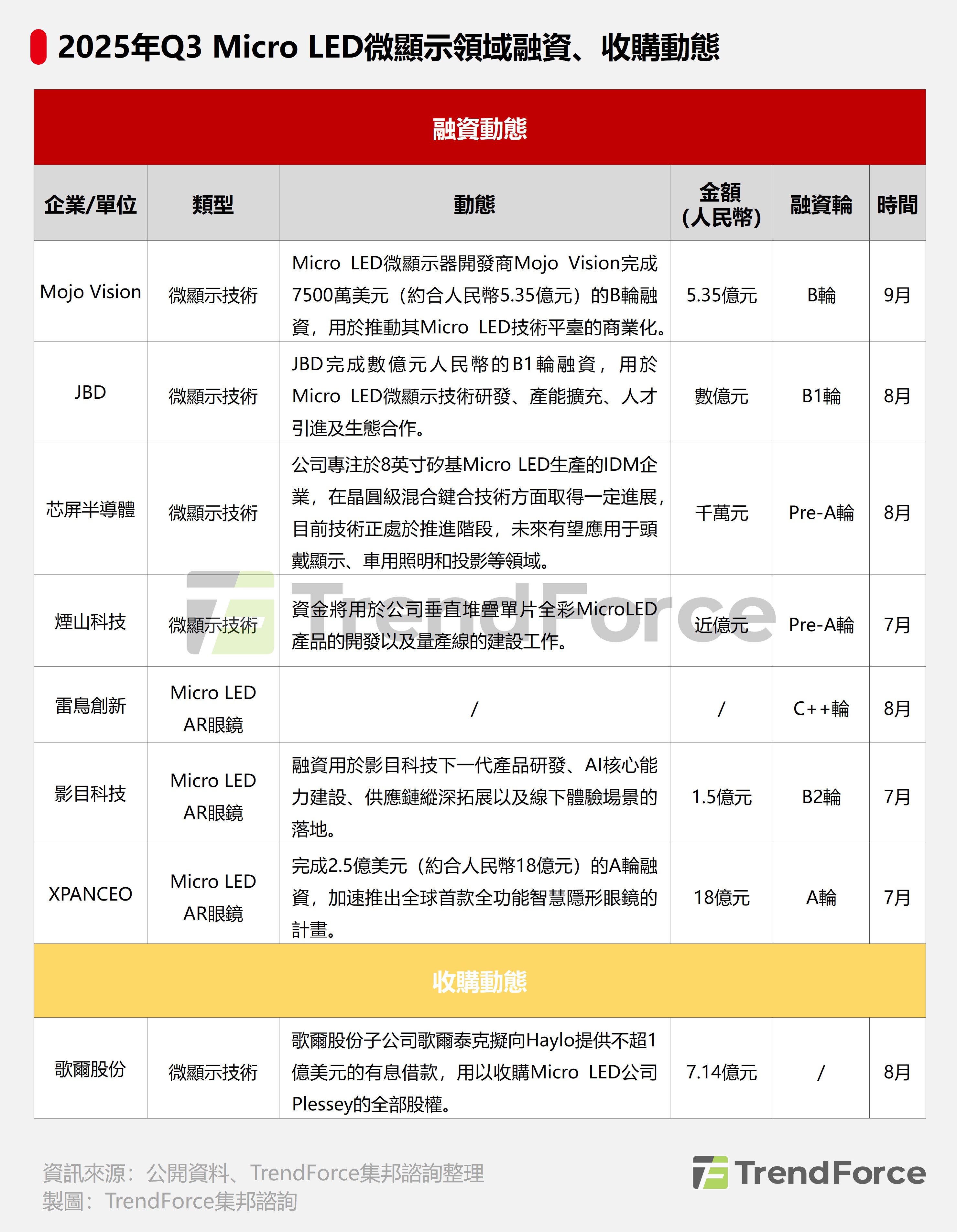 TrendForce 2025 Micro LED 顯示與非顯示應用市場分析